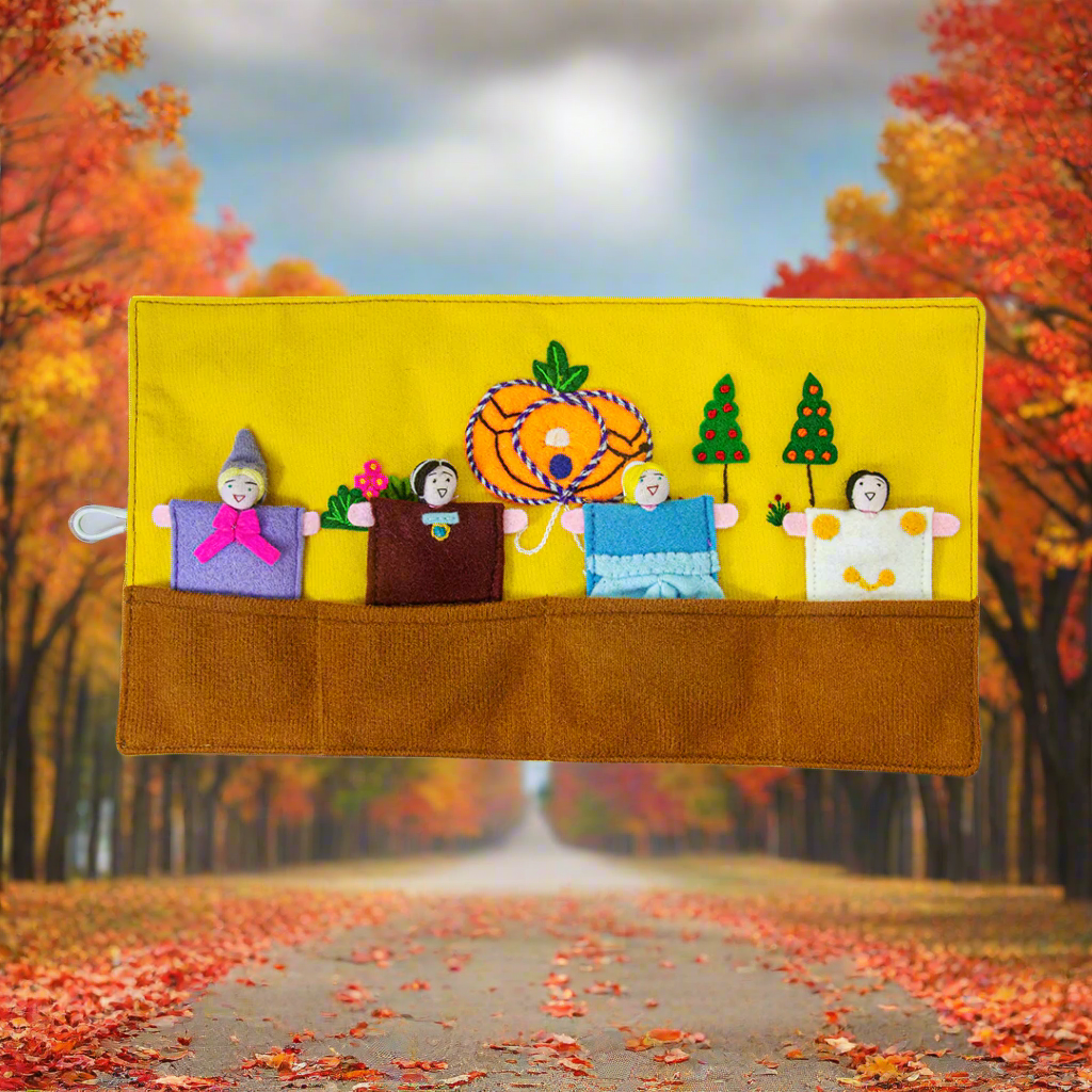 Get fun adventures with your kids with our Cinderella, Zoo, Princess, Three Little Pigs or Little Red Riding Hood finger puppets collections in their unique handmade embroidery sleeping bags for carry them!